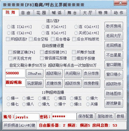 劲舞源源全功能版是一款免费的劲舞团辅助,具有连I,连P,连G,连C,连B,连M等功能,欢迎下载。可支持家庭网吧通用,而且软件无毒、最新、免费,更有多项功能让你驰骋游戏,笑傲舞林从此开始,需要的小伙伴不要错过。