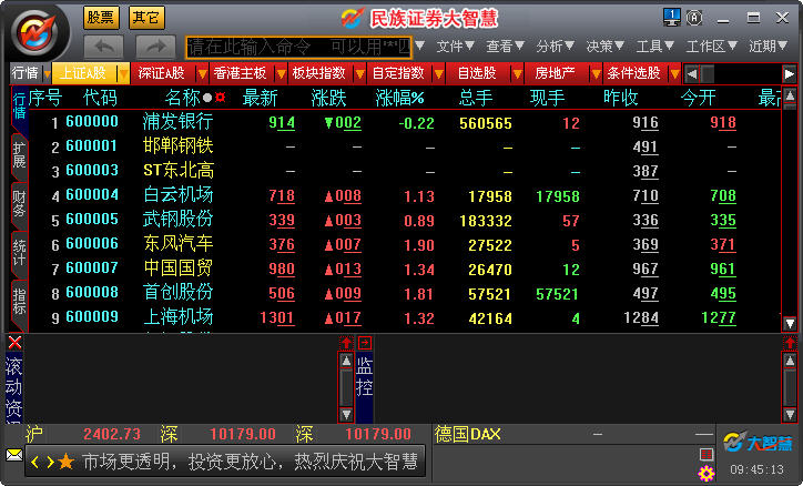 民族证券大智慧行情版,绑定新版网上交易委托软件。