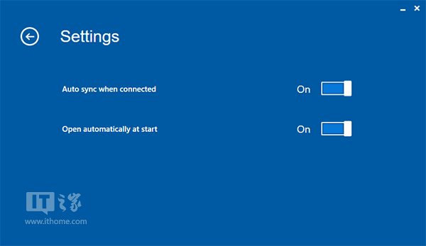 ▲设置界面,可开关“连接后自动同步”和“在开始时自动打开”