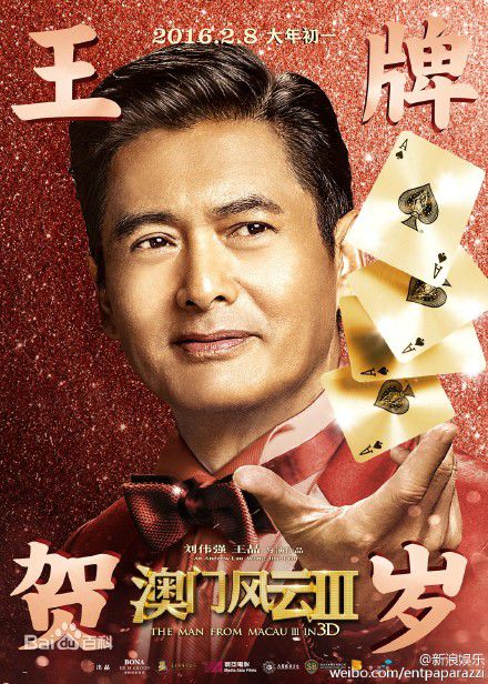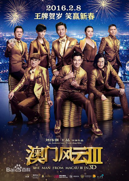 《澳门风云3》是由博纳影业出品,由王晶监制,刘伟强执导,周润发、刘德华、张学友、张家辉、李宇春、刘嘉玲等领衔主演的一部动作喜剧片。