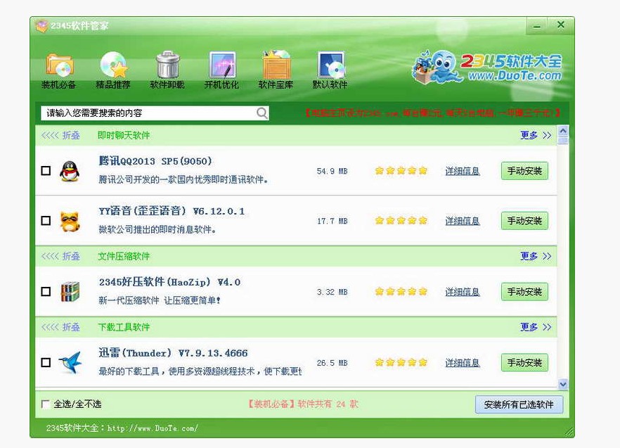 2345软件管家适合软件爱好者和电脑城装机工作人员。