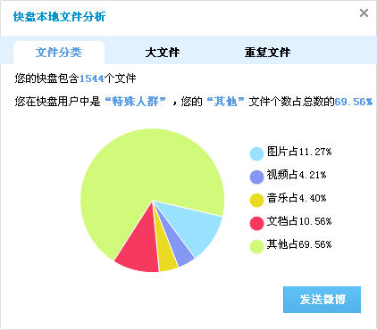 “快盘”是金山软件基于云存储推出的一款免费服务,以“安全、省心、方便”的理念来打造这个产品,将云存储引入到日常生活中来,让用户能最直接的感受到云存储给工作、生活带来的便利。功能与dropbox类似,具备网络同步、备份和共享功能。用户只需下载金山快盘客户端软件,它会在计算机生成一个虚拟盘符(K盘),把需要备份与同步的文件放在其中就可以了。